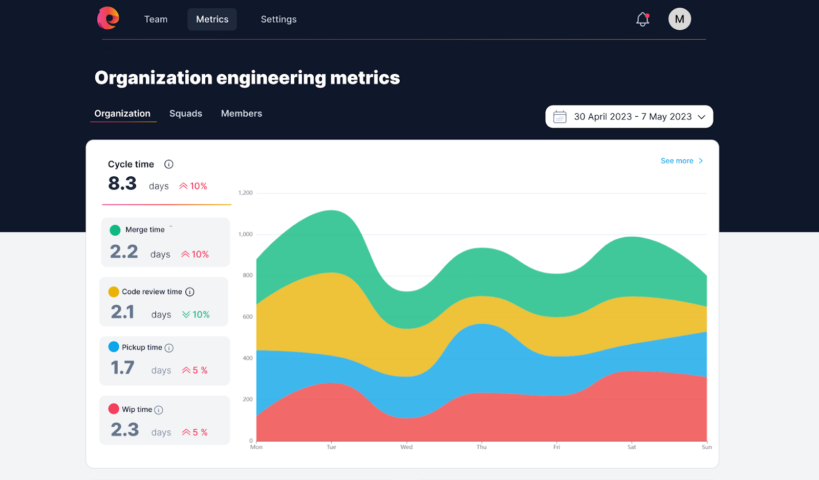 One of these key metrics is cycle time, which measures the time it takes to deliver a feature from start to finish. Cycle time is a critical metric for software development teams. It tells you, when combined with other metrics, whether you are providing value to your customers quickly, which is important to shorten the developer-user feedback loop and stay ahead of your competition.