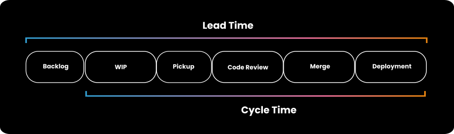 We can divide cycle time into five sub-times: WIP time, pickup time, code review time, merge time, and deployment time.