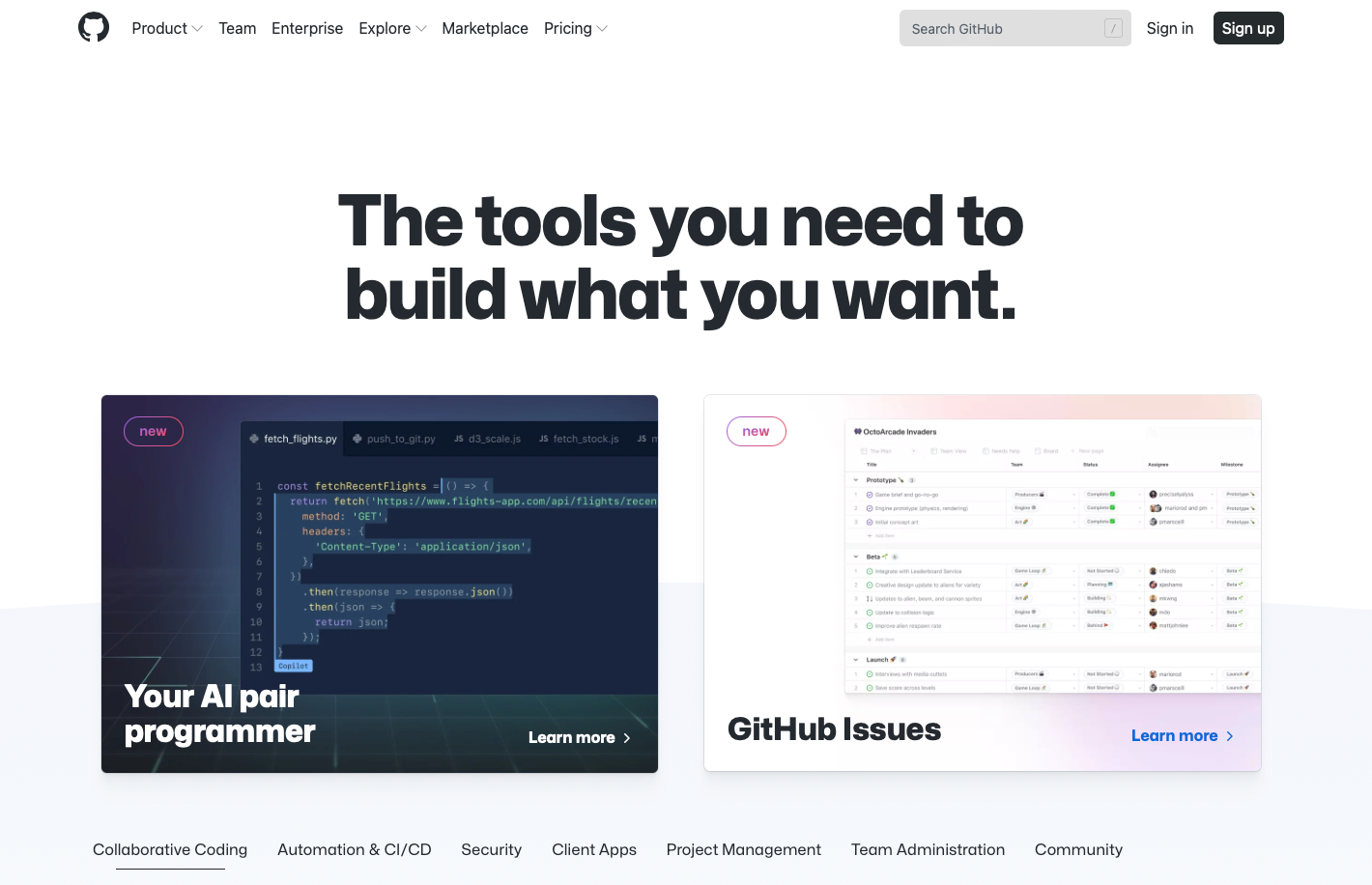 - Team: This plan costs $48 a year and comes with everything in the free plan, plus access to GitHub Codespaces, required reviewer functionality, etc.