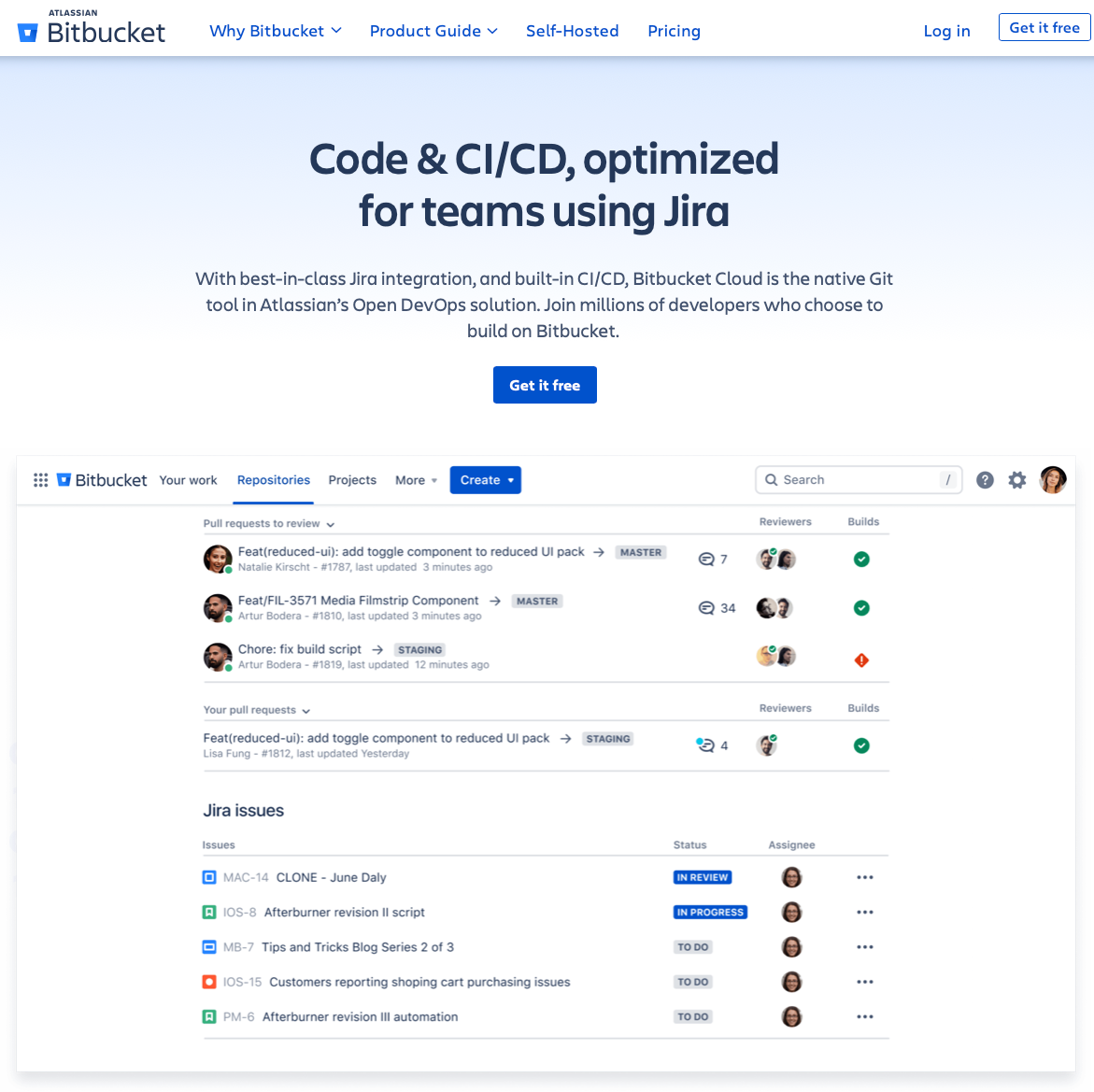 - Collaboration functionality: Bitbucket blends seamlessly with Jira to facilitate single-context collaboration using Jira's user interface.