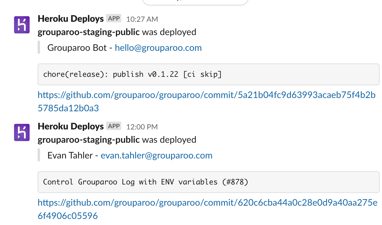 For example, we're using the Slack notification buildpack to get notified of deployment over Slack.