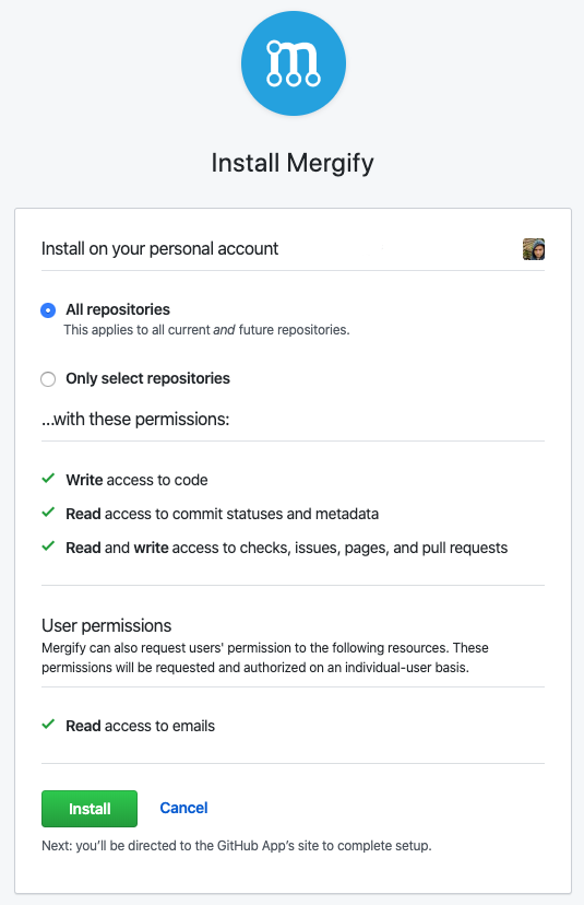 Set up Mergify in your repository. Go to the system’s dashboard and choose the desired repositories for Mergify to access.