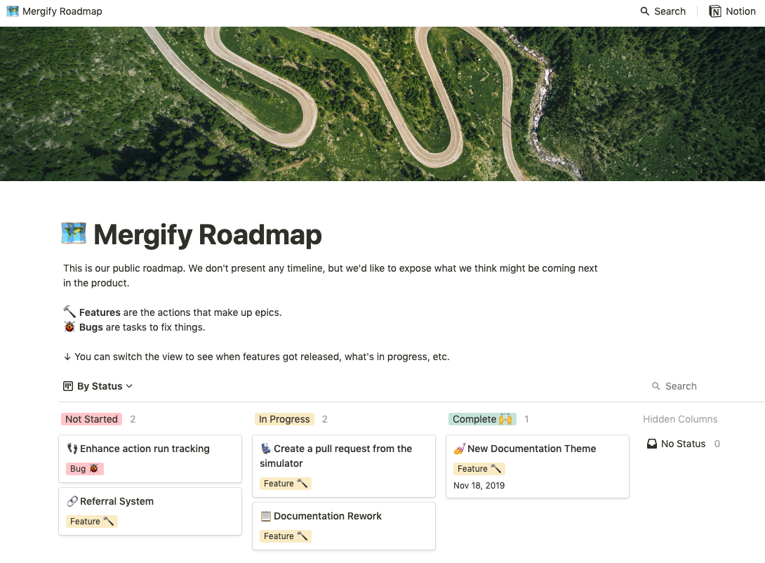 Today, we’ve decided to publish our roadmap publicly for the first time. We also use Notion to generate and maintain it — it’s quite a handy tool to do so.
