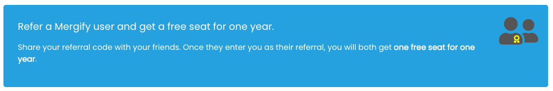 You can now refer your friends to Mergify! Using your referral code will grant both you and your referee a one-year seat to any of our plans.