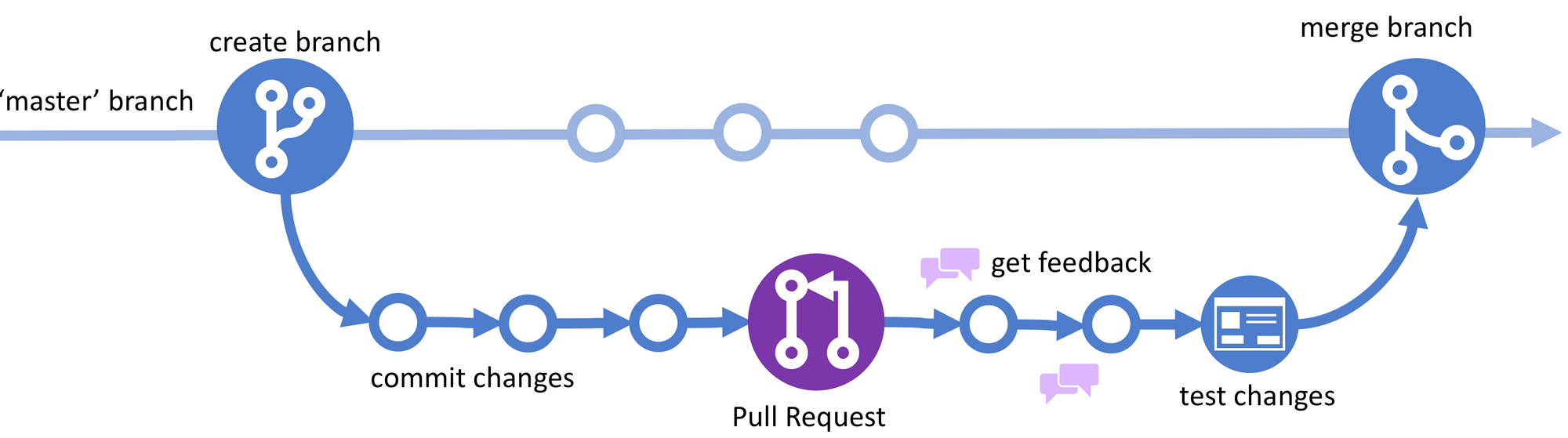 - Opening a pull request when your feature in development is finished and merging it into the master branch once it has been reviewed.