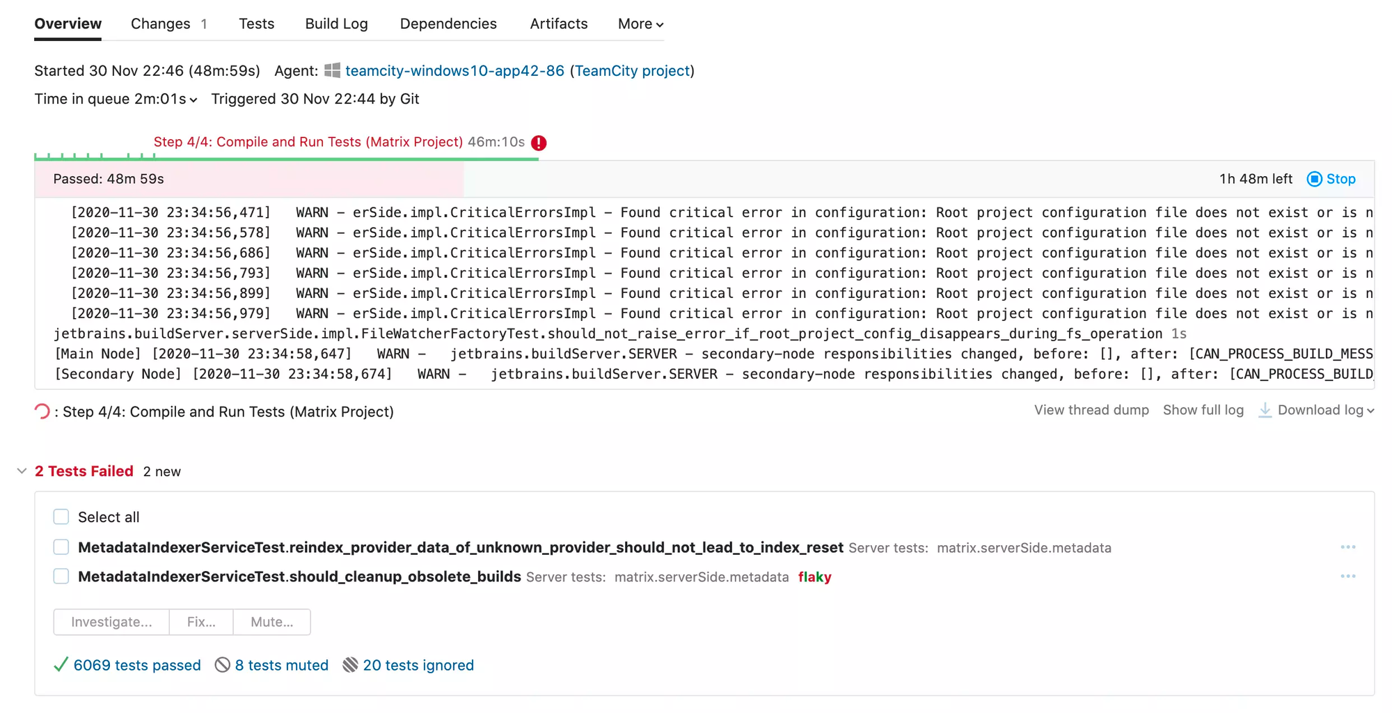 No need to wait for a build to complete to identify problems. TeamCity provides real-time reporting, allowing developers to discover and investigate issues as they arise instantly. This immediate visibility enables teams to resolve problems efficiently, assign tasks to project members, and even open the problematic code directly in their IDE, saving time and increasing productivity.