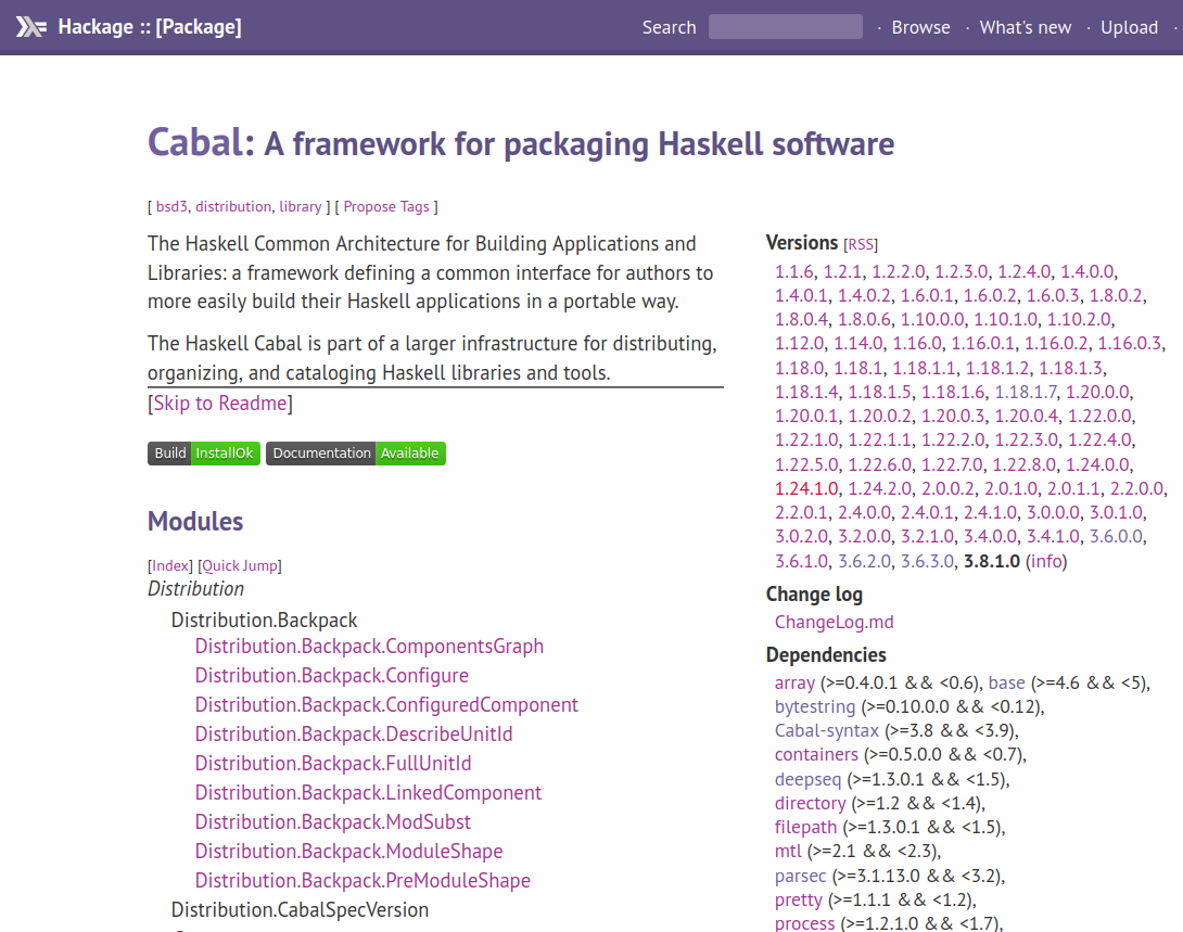 Cabal is actually a package manager and build system. It’s a long-standing project that has been around for about 15 years. And thanks to this project Cabal is now the main way to build Haskell software. Before that, developers were just using Makefiles or similar, and the compiler directly. People switched pretty quickly because it is much handier to have a special-purpose build system. There is also a bit of package management, as you would expect, since most modern languages have this ability to fetch stuff from a central repository. It can be GitHub these days, but the main mode of operation is to have one server called Hackage, which stores a lot of Haskell packages. We query it, download things from there, and use them to build.