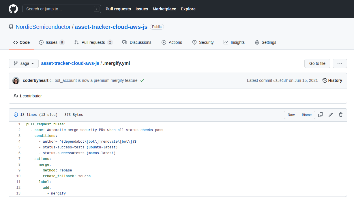 I use Mergify on a TypeScript project that I started in 2019, intending to provide our customers with an open-source reference implementation of end-to-end examples for an IoT product. That starts with the firmware, but a lot of the code is the cloud component, showing our customers that they need to get location data from the device to the cloud if they want to build a cat tracker. For example, that they will need to visualize it on a web application, what technologies should be used there, what AWS services should be used there, or which database should be used there. I’ve made this example open source, and I’ve done the same thing for Azure.