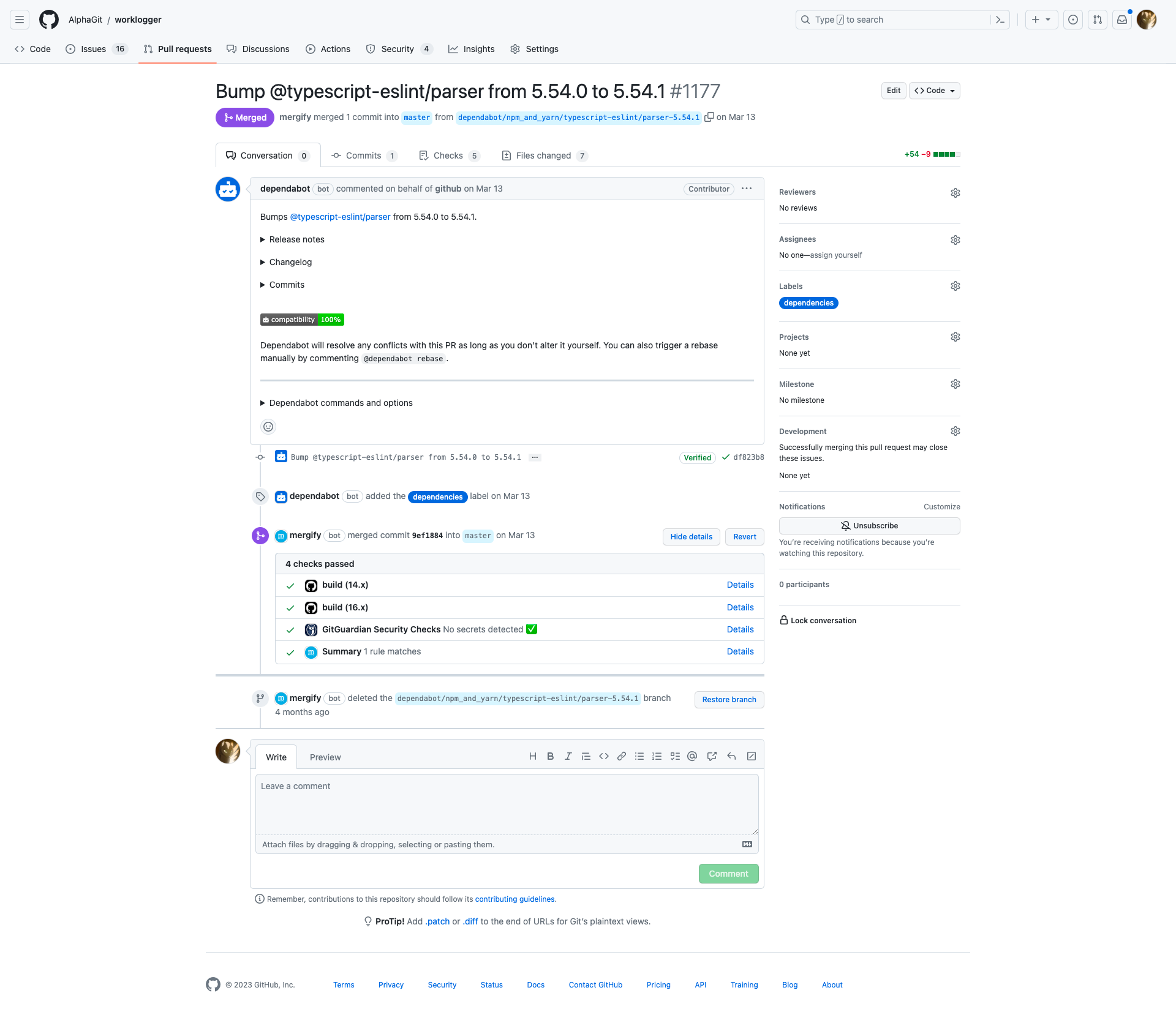 I would spend a lot of time doing that instead of working on features that I wanted to build. At some point, I came across dependabot, which solves most of that problem. It keeps track of the dependencies and says, "Hey, here's an update; you can use it." Yeah, cool. But I still need to test the changes, make sure they work, test them out, then merge them, and then call it done.