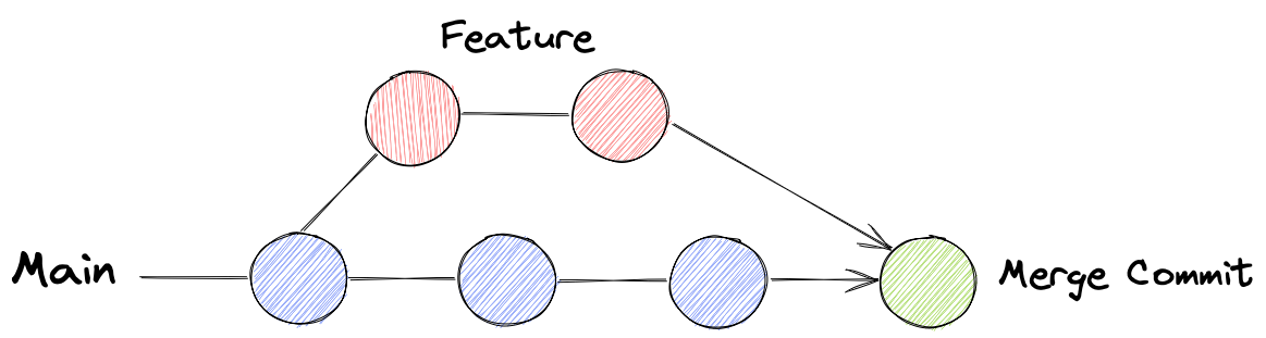 Git tracks commits to a branch over time and allows for a special merge commit to be made. This merge commit combines the parent commits located directly after the most recent common commit on both the current branch and the branch to be merged. There are multiple variations of this basic merging process that alter the results of the operation. However, you can generally expect merge commits to add commits from a target branch to the branch you currently have checked out.